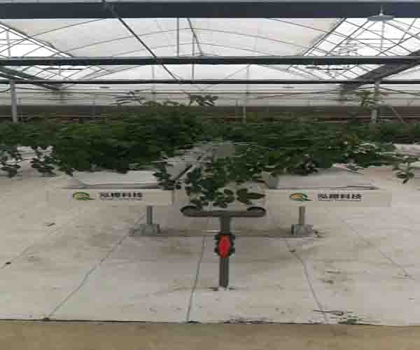 三維種植槽-柱栽培模式采用塑料栽培缽,其通過柱子串聯(lián)連接。營(yíng)養(yǎng)液從頂部開始一層一層地滲入下一層,并通過液管循環(huán)。立柱上的栽培碗可以自由旋轉(zhuǎn),因此草莓可以均勻地照射陽光。這種栽培方式可以利用溫室的空間來增加單位面積的秧苗數(shù)量和果實(shí)產(chǎn)量。