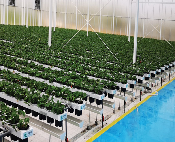 盆栽型雙排草莓栽培種植系統(tǒng)更適合用于觀光采摘的園區(qū),操作管理方便,通道大,不僅滿足采摘草莓的需求,更適合于客戶整盆草莓端走,自己回家體驗(yàn)草莓種植的樂趣。