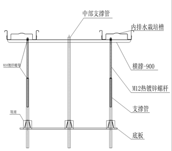鮮切玫瑰栽培植槽種植系統(tǒng),采用內(nèi)排水式且連續(xù)生產(chǎn)的鍍鋅高耐候聚酯涂層板栽培槽,防腐好,強(qiáng)度高,排水更通暢,無(wú)接頭,避免排水槽對(duì)接出現(xiàn)漏水現(xiàn)象。采用內(nèi)排水截面,有效阻止玫瑰葉子掉落排水溝引起排水不暢,同時(shí)避免陽(yáng)光直射,導(dǎo)致排水溝滋生青苔綠藻。釆用通長(zhǎng)底板支架支撐方式,使支架和軌道連成一個(gè)整體,支撐強(qiáng)度和穩(wěn)固性更好。
